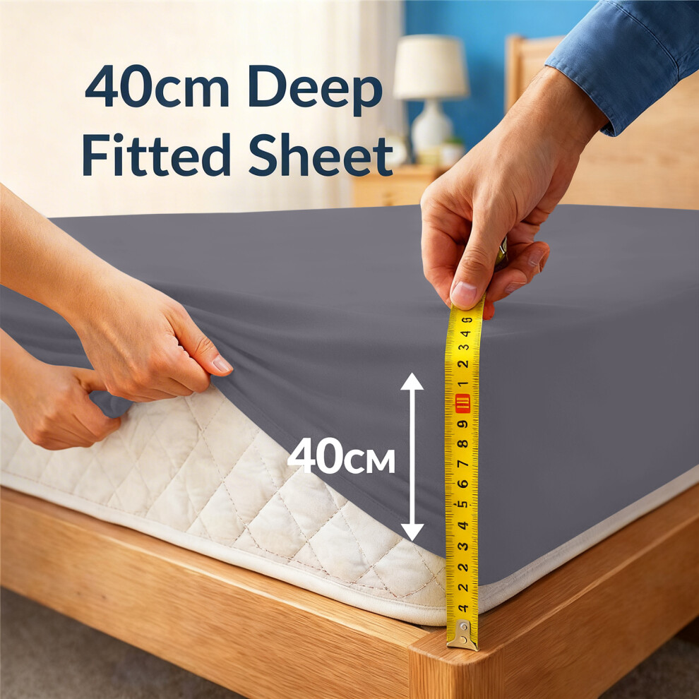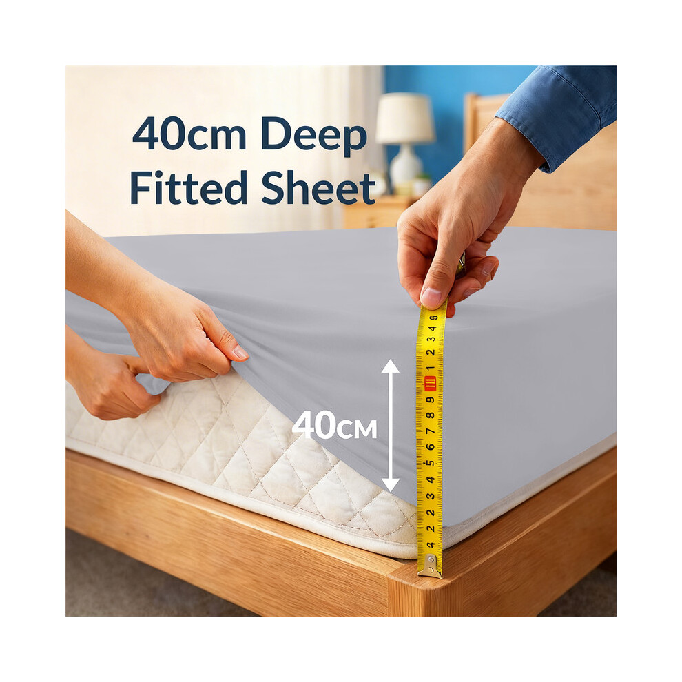 (Super King, Grey) Extra Deep 40cm Pocket Fitted Sheet - Hotel Quality Bedsheet for Single Double & King Size Bed)