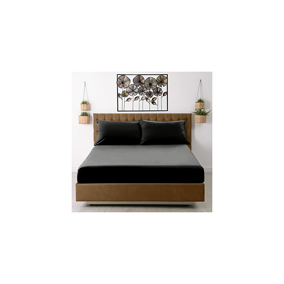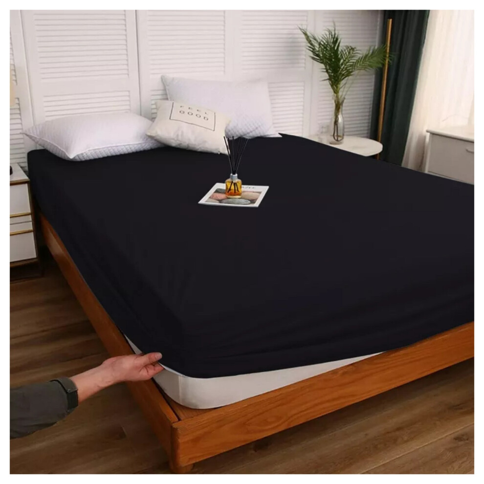 King Size Fitted Sheet Black - Plain Bedding Sheet With Elastic Corner - Polyester Fabric Bedsheet