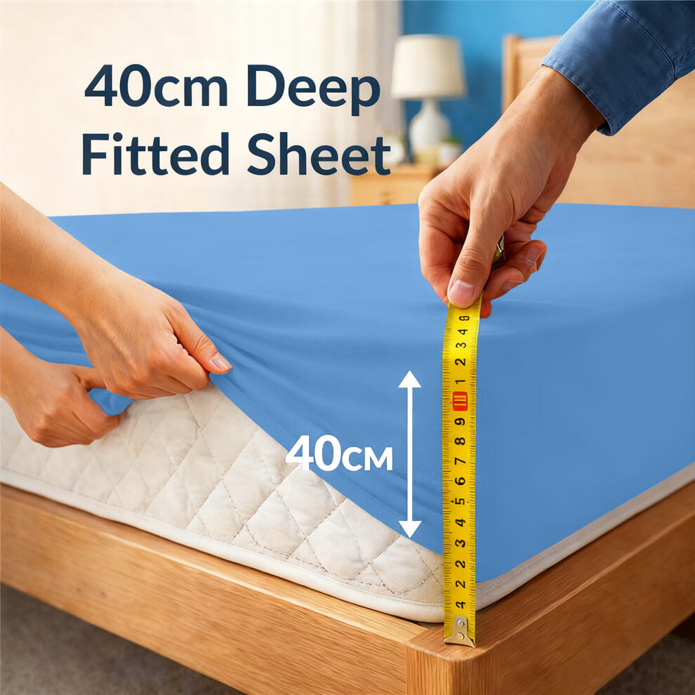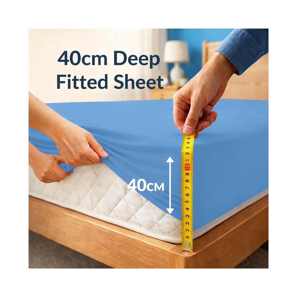 (Single, Light Blue) Extra Deep 40cm Pocket Fitted Sheet - Hotel Quality Bedsheet for Single Double & King Size Bed)