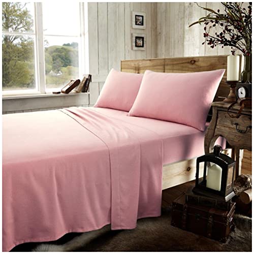 Gaveno Cavailia Premium Quality Plain Dyed Flannelette Fitted Sheet, Luxury 100% Brushed Cotton Easy Care, Soft & Cosy Bed Linen, White, Superking Size Bedsheet, Pink, Super King