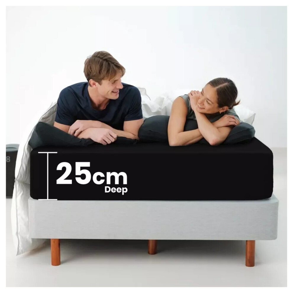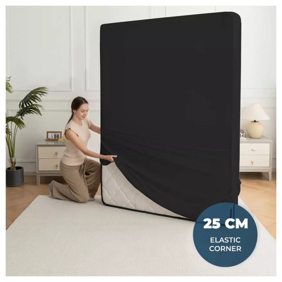 (Super King Fitted Bed Sheet) Plain Fitted Sheet Black Single Double King Size Bedsheet 25cm Deep UK