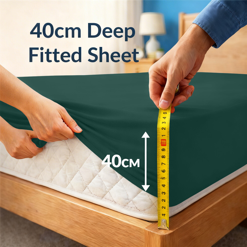(Super King, Emerald) Extra Deep 40cm Pocket Fitted Sheet - Hotel Quality Bedsheet for Single Double & King Size Bed)