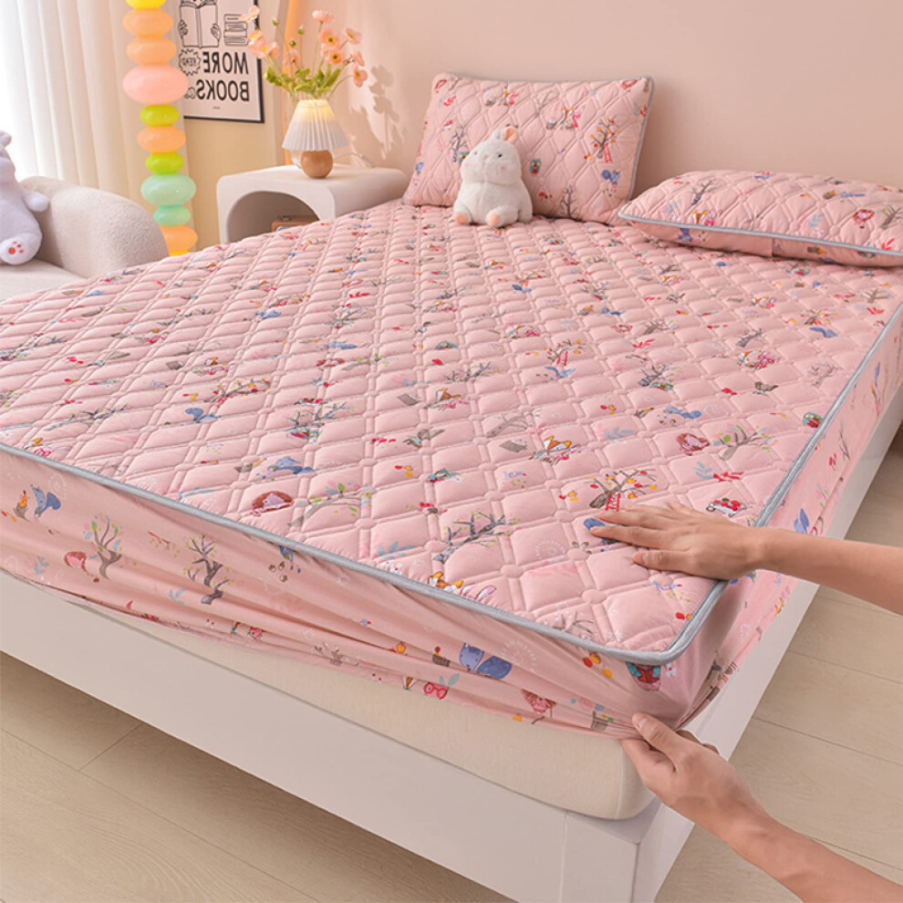 Bedsheet Breathable No Color Fade King Size, Thicken Quilted Mattress Cover Topper, Animal Print 200x200cm 3PCS Set for Kids