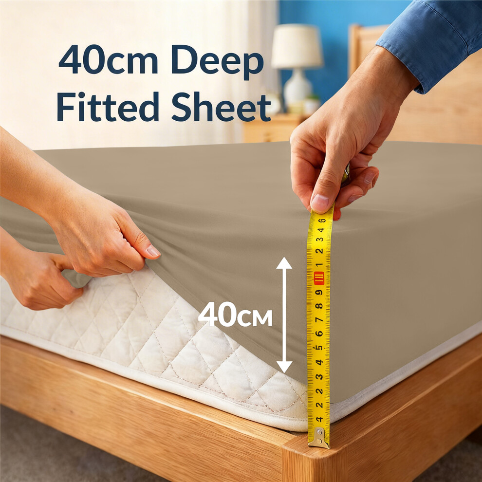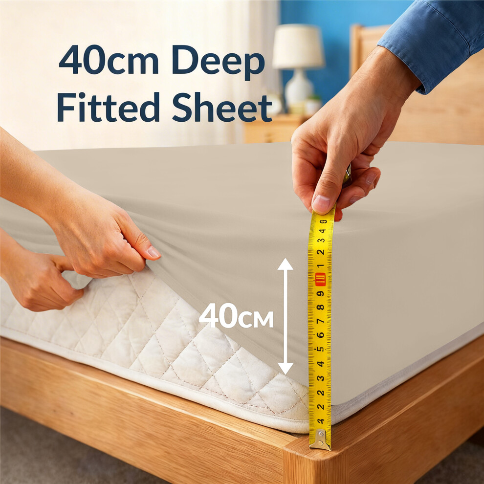 (Double, Beige) Extra Deep 40cm Pocket Fitted Sheet - Hotel Quality Bedsheet for Single Double & King Size Bed)