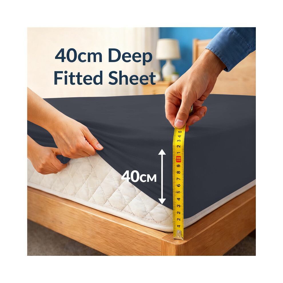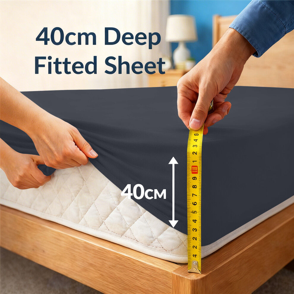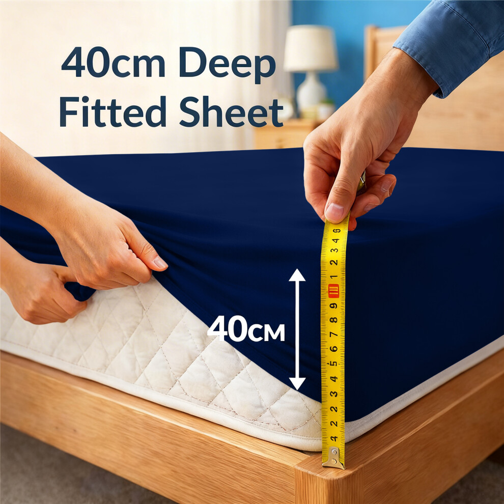 (Single, Navy Blue) Extra Deep 40cm Pocket Fitted Sheet - Hotel Quality Bedsheet for Single Double & King Size Bed)