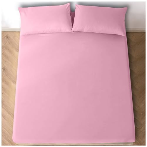 GC GAVENO CAVAILIA Polycotton Fitted Sheets King Size- Shrinkage and Fade Resistant Bed Set- Super Soft Luxury Bedding Bedsheet 25cm Deep- Pink