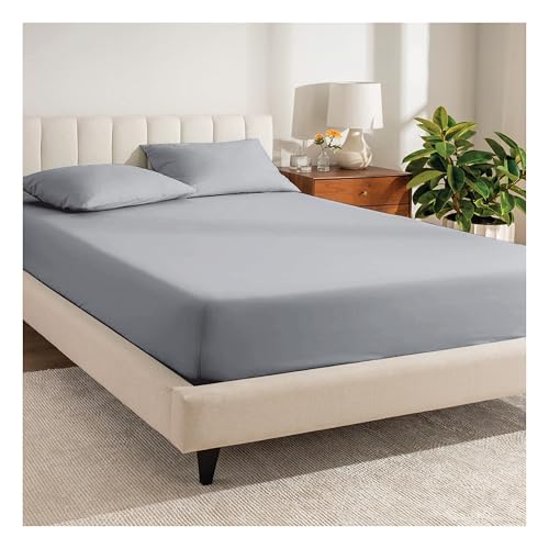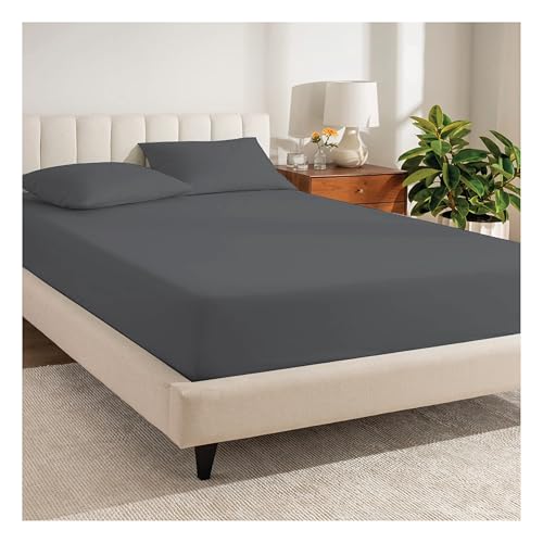 GC GAVENO CAVAILIA Super Dreamer King Size Fitted Sheet Grey - Plain Bedding Sheet With Elastic Corner - Polyester Fabric Bedsheet