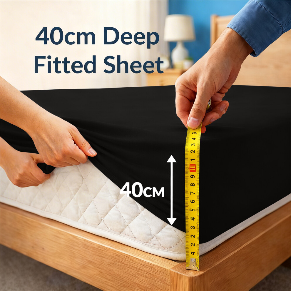 (Super King, Black) Extra Deep 40cm Pocket Fitted Sheet - Hotel Quality Bedsheet for Single Double & King Size Bed)