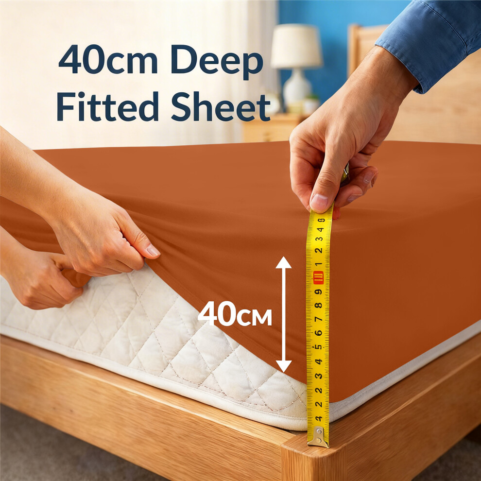 (Super King, Rust) Extra Deep 40cm Pocket Fitted Sheet - Hotel Quality Bedsheet for Single Double & King Size Bed)