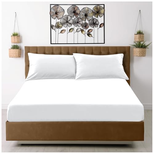 GC GAVENO CAVAILIA Super Dreamer King Size Fitted Sheet White - Plain Bedding Sheet With Elastic Corner - Polyester Fabric Bedsheet
