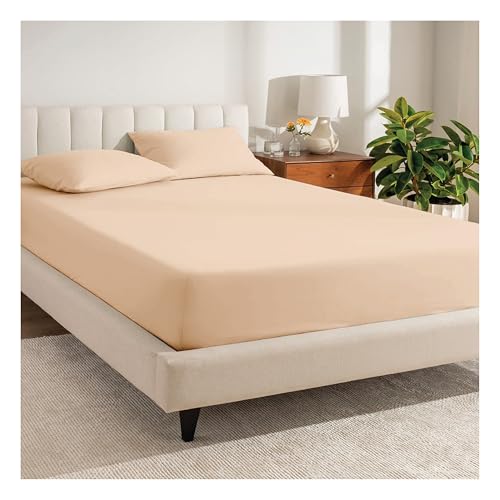 Family Bedding King Size Fitted Sheets Deep Fit | Fitted Bottom Sheet King Jersey Cotton | Deep Pocket Fitted Sheet King | Bedsheet For Kingsize Bed (King, Cream)