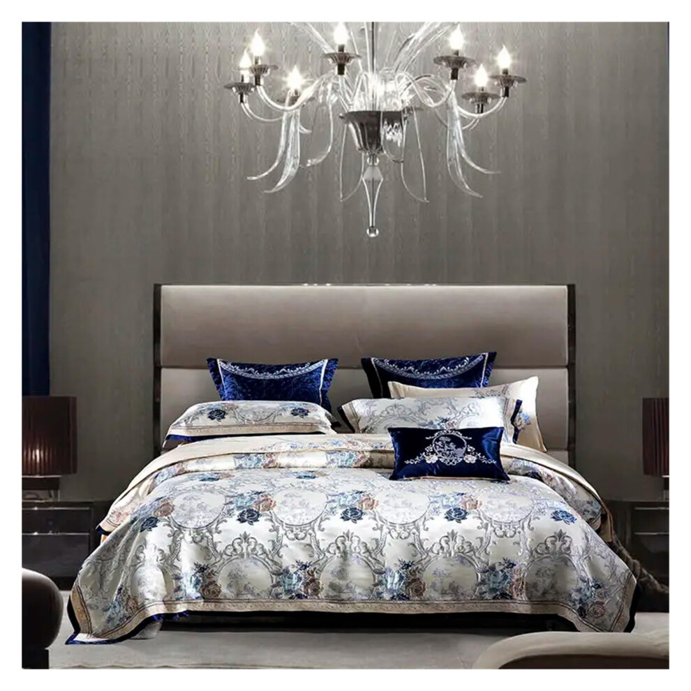 Queen or King Size Silk Cotton Jacquard Bedding Set, 4Piece Duvet Cover and Bedsheet Ensemble