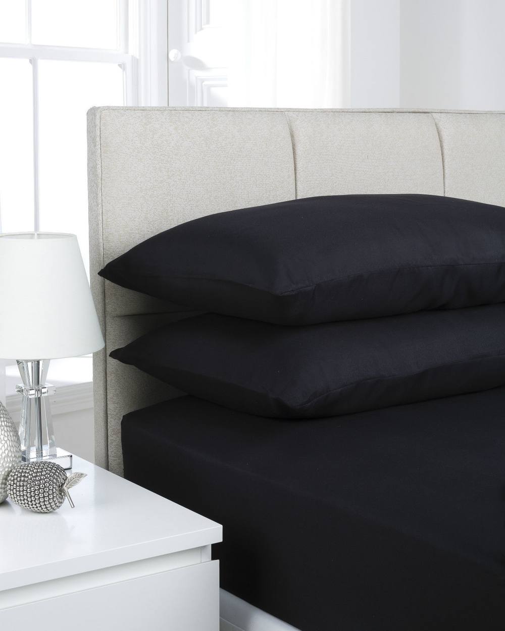 (Black Pillowcase Only) Plain Fitted Sheet Black Single Double King Size Bedsheet 25cm Deep UK