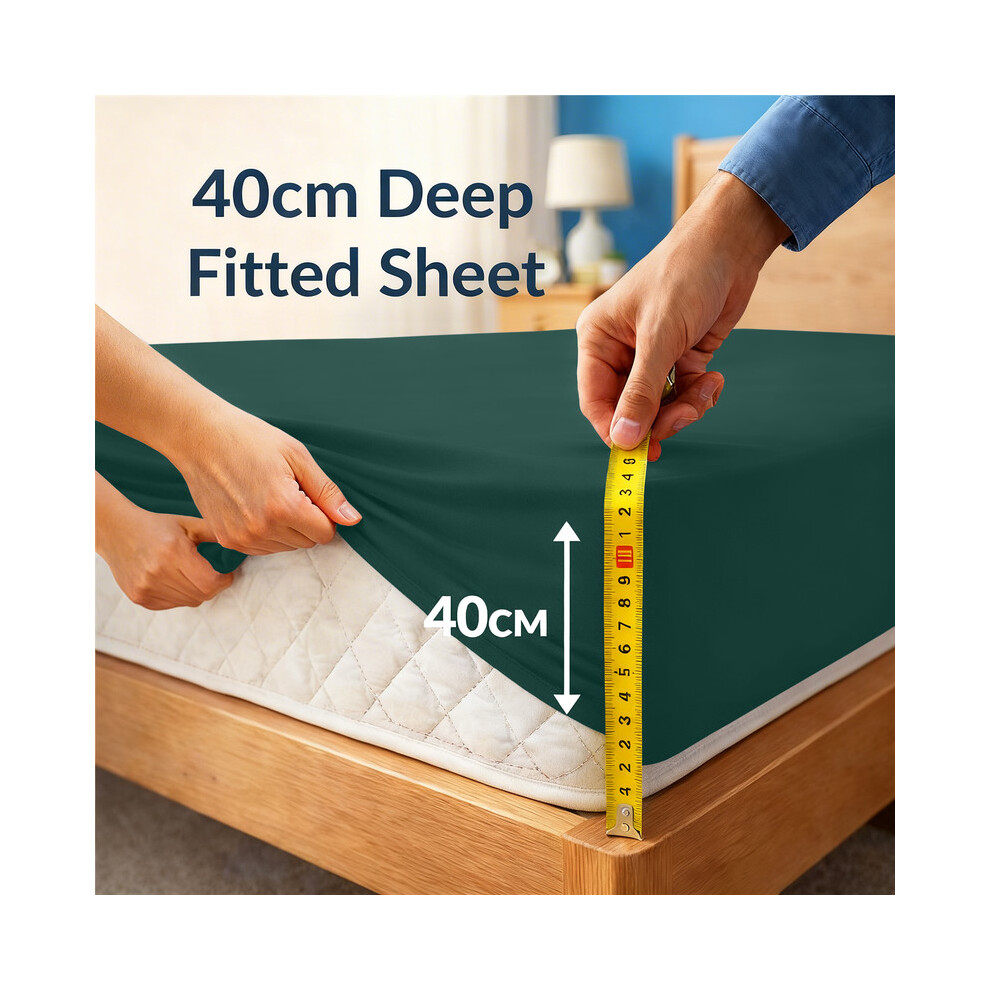 (Double, Emerald) Extra Deep 40cm Pocket Fitted Sheet - Hotel Quality Bedsheet for Single Double & King Size Bed)