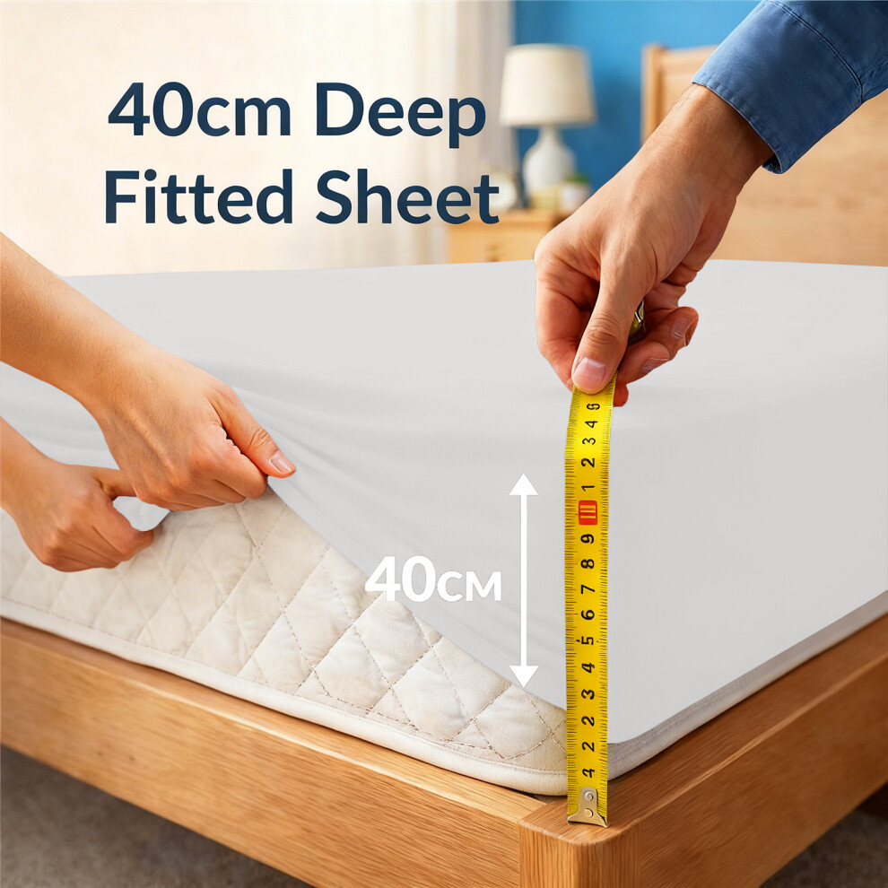 (Super King, White) Extra Deep 40cm Pocket Fitted Sheet - Hotel Quality Bedsheet for Single Double & King Size Bed)