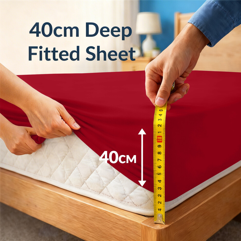 (Super King, Red) Extra Deep 40cm Pocket Fitted Sheet - Hotel Quality Bedsheet for Single Double & King Size Bed)
