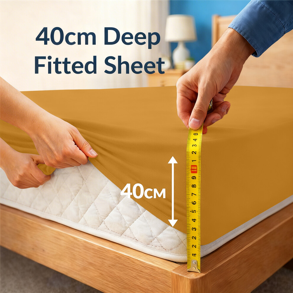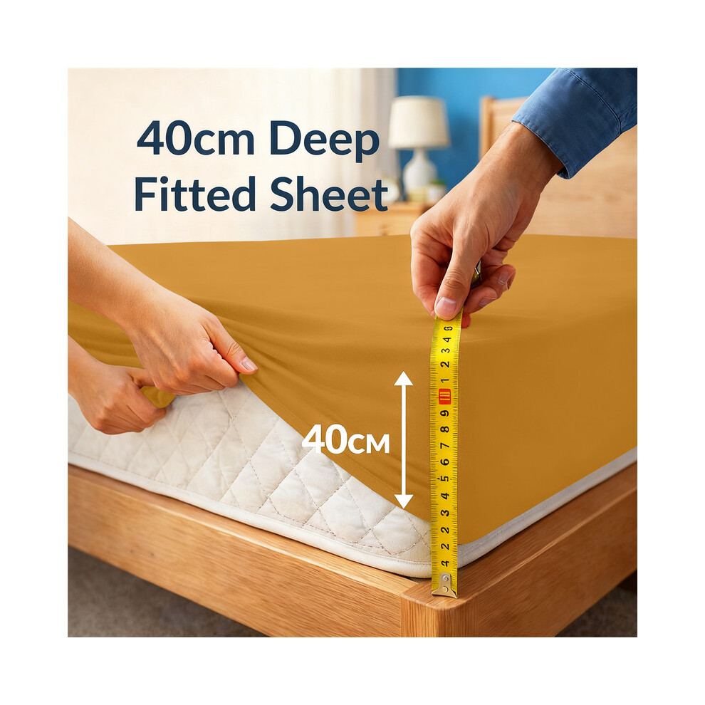 (Single, Ochre) Extra Deep 40cm Pocket Fitted Sheet - Hotel Quality Bedsheet for Single Double & King Size Bed)