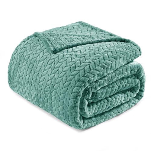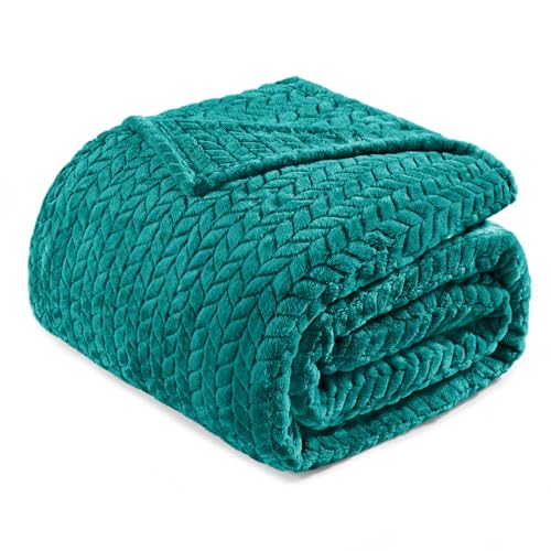 Exclusivo Mezcla King Size Fleece Blanket for Bed, 230x265 CM Soft Cozy Jacquard Flannel Blankets, Lightweight Fuzzy Plush Warm for All Seasons, Teal
