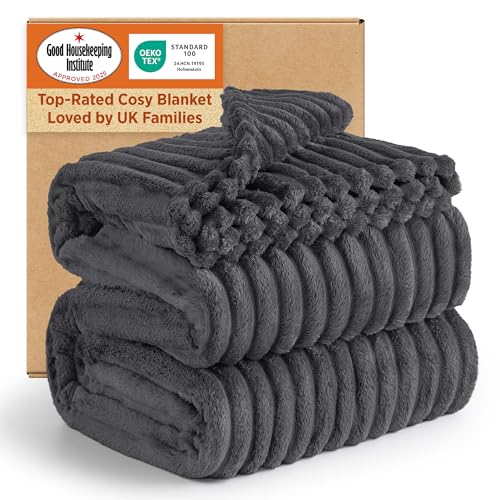 Dreamscene Throws for Sofas Large, Soft Warm Honeycomb Waffle Fleece Blanket for Bed Sofa Settee Fluffy King Size Blanket Winter Faux Fur Throw, Charcoal Grey - 200 x 240cm