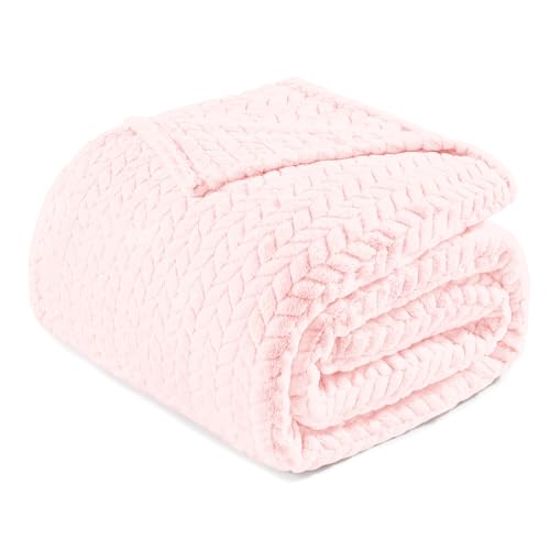Exclusivo Mezcla King Size Fleece Blanket for Bed, 230x265 CM Soft Cozy Jacquard Flannel Blankets, Lightweight Fuzzy Plush Warm for All Seasons, Light Pink