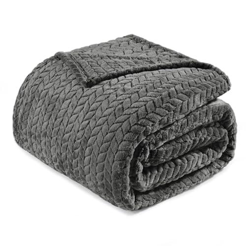 Exclusivo Mezcla King Size Fleece Blanket for Bed, 230x265 CM Soft Cozy Jacquard Flannel Blankets, Lightweight Fuzzy Plush Warm for All Seasons, Dark Grey