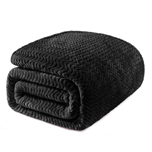 Exclusivo Mezcla King Size Fleece Blanket for Bed, 230x265 CM Super Soft Cozy Blankets with Decorative Wave Textured, Lightweight Plush All Season Use, Black