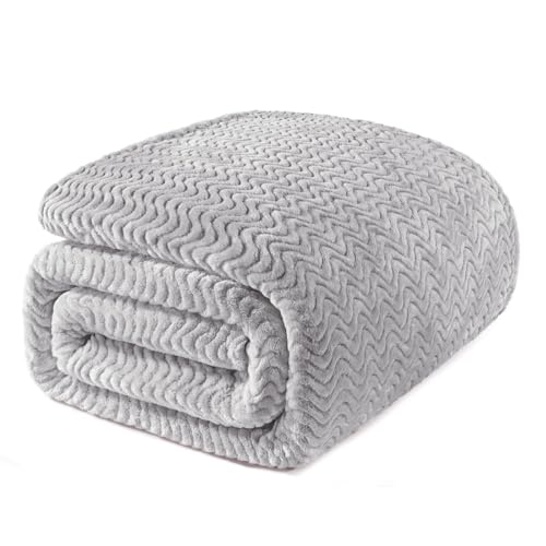 Exclusivo Mezcla King Size Fleece Blanket for Bed, 230x265 CM Super Soft Cozy Blankets with Decorative Wave Textured, Lightweight Plush All Season Use, Light Grey