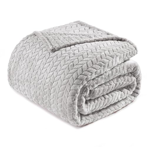 Exclusivo Mezcla King Size Fleece Blanket for Bed, 230x265 CM Soft Cozy Jacquard Flannel Blankets, Lightweight Fuzzy Plush Warm for All Seasons, Light Grey