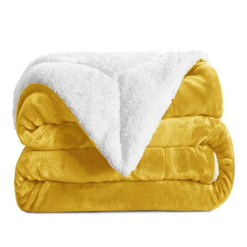 Aspire Homeware King Size Sherpa Fleece Blanket Reversible Bed Throws Blankets for Sofas Soft Fluffy Thick Large Blanket Microfiber Sofa Throw, Ochre, 200 x 240 cm