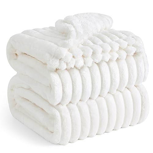 Bedsure Bed Blankets King Size - Fleece Blanket Fluffy Cosy Warm Blankets, Soft Cute Double Size Throw Gifts for Women and Girls, White, 230x270 cm