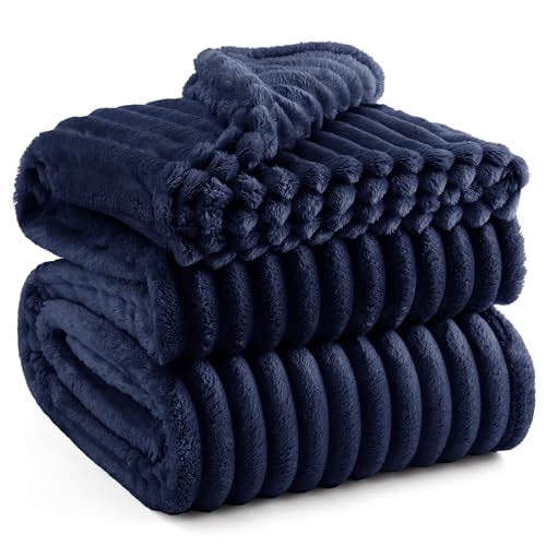 Bedsure Bed Blankets King Size - Fleece Blanket Fluffy Cosy Warm Blankets, Soft Cute Double Size Throw Gifts for Women and Girls, Navy, 230x270 cm