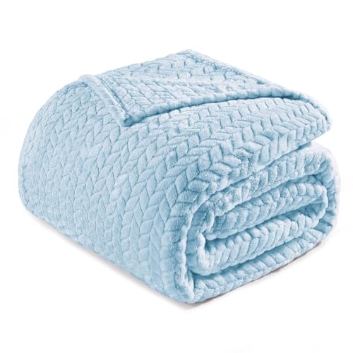 Exclusivo Mezcla King Size Fleece Blanket for Bed, 230x265 CM Soft Cozy Jacquard Flannel Blankets, Lightweight Fuzzy Plush Warm for All Seasons, Light Blue