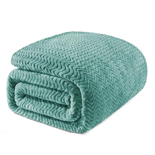 Exclusivo Mezcla King Size Fleece Blanket for Bed, 230x265 CM Super Soft Cozy Blankets with Decorative Wave Textured, Lightweight Plush All Season Use, Teal