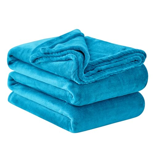 Aisbo Fleece Throw Blanket Teal - Versatile Soft Warm King Size Blanket Fluffy Extra Large Throws for Bed, Cozy Solid Flannel Blanket for Sofa Couch, 230x270cm