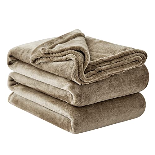 Aisbo Fleece Throw Blanket Taupe - Versatile Soft Warm King Size Blanket Fluffy Extra Large Throws for Bed, Cozy Solid Flannel Blanket for Sofa Couch, 230x270cm