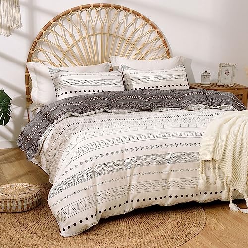 Lekesky Grey King Size Duvet Cover Sets - Boho Stripe Print Grey Bedding Sets King Size (1x Duvet Cover, 2x Pillowcases) Ultra-Soft Microfibre Duvet Set 230x220 cm