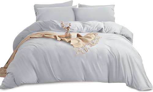 King Size Duvet Bedding Cover Sets Duvet Cover with 2pcs Pillowcases Soft Microfibre Polyester Duvet Cover Sets (Light Grey)