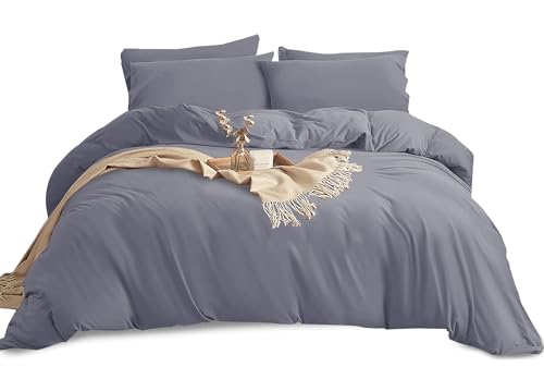King Size Duvet Bedding Cover Sets Duvet Cover with 2pcs Pillowcases Soft Microfibre Polyester Duvet Cover Sets (Blue Grey)