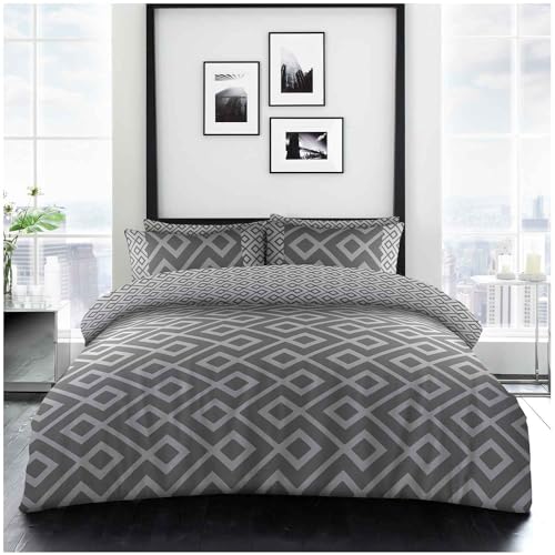 DEKORO King Size Duvet Cover Sets - Reversible Doublesided Duvet Cover - Premium Microfibre - Ultrasoft Durable Bedding Sets Grey