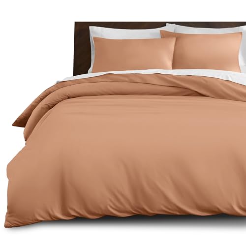 Imperial Rooms King Size Duvet Cover Sets Brushed Microfiber 3 PCs Plain Bedding Set with Pillow Cases Button Closure Ultra Soft Quilt Bed Cover (230 x 220 Cm Peach)