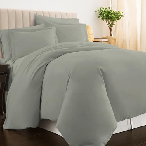Imperial Rooms King Size Duvet Cover Sets Brushed Microfiber 3 PCs Plain Grey Bedding Set with Pillow Cases Button Closure Ultra Soft Quilt Bed Cover (230 x 220 Cm)