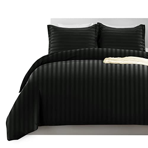 Yorkshire Bedding King Size Duvet Cover Sets Stripes Satin Hotel Quality Bedding Set with Pillowcases Soft Microfiber Duvet Covers (Black 230x220 Cm)