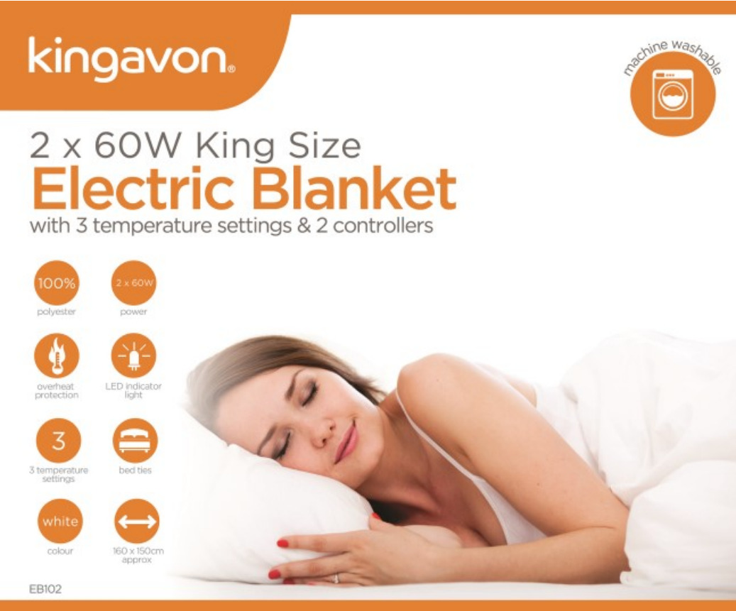 King Size Electric Blanket Heated Comfort with 2 Controllers 160x150cm