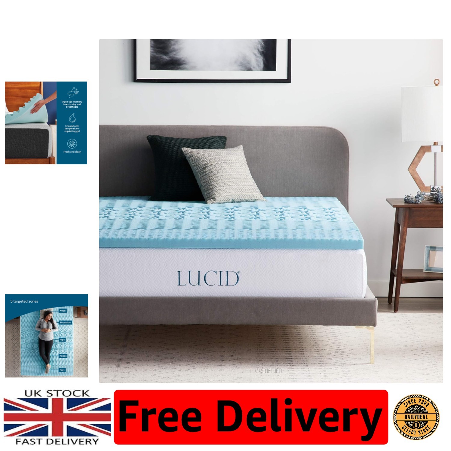 King Size 5 cm Memory Foam Mattress Topper - Cooling Gel and 5 Zoned Support