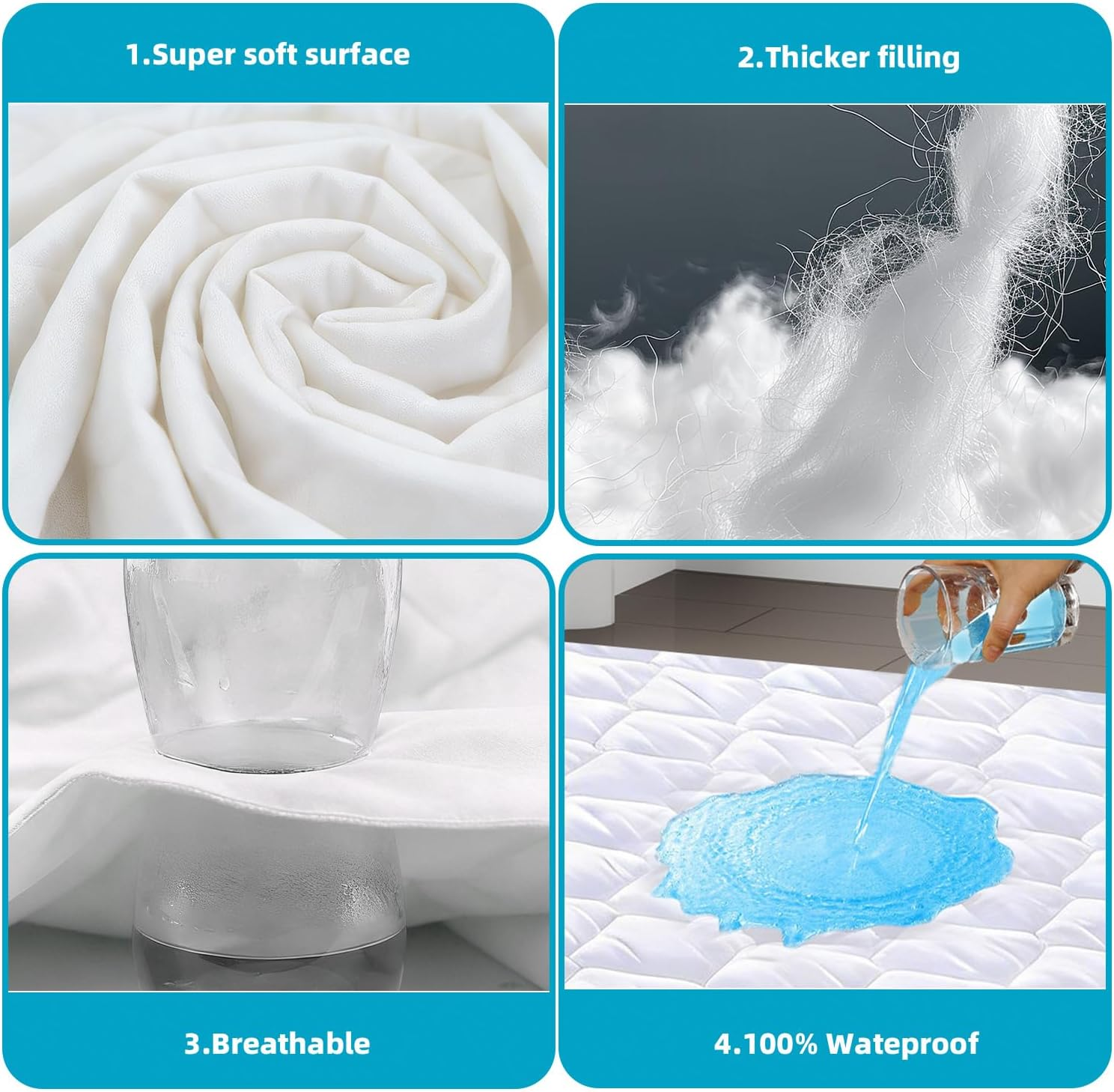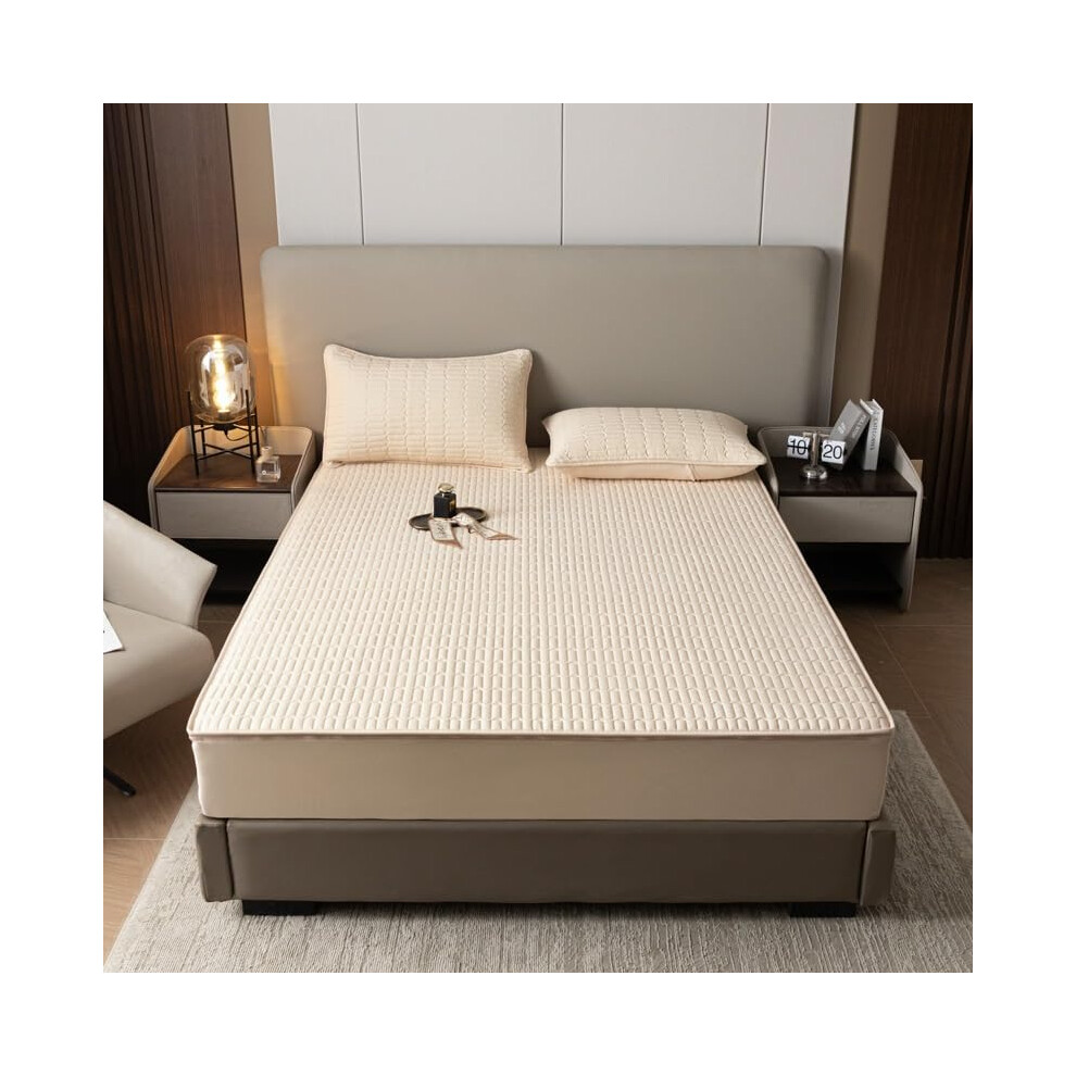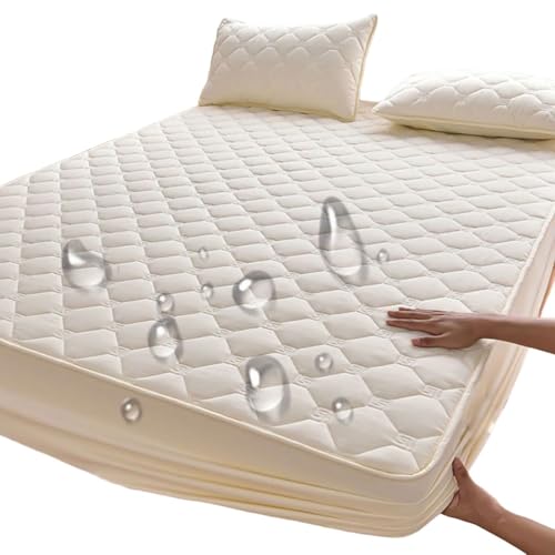Quilted Waterproof mattress protector King Bed - Super Absorbent Mattress Protector, Anti Allergy Breathable King Size mattress protector,Waterproof Mattress Protector King Size fitted style 150X200CM