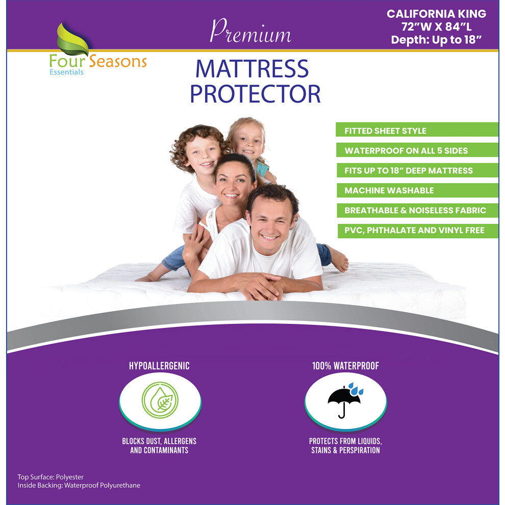 California King Size Waterproof Mattress Protector - Fitted Sheet Style - Premium Quality Cover