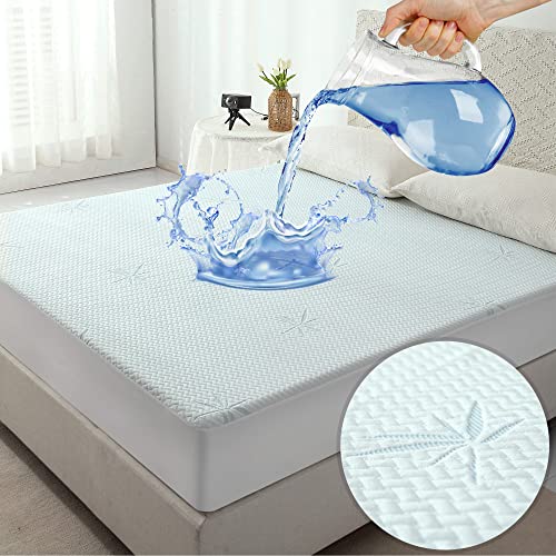 King Size Waterproof Mattress Protector, Cooling Bamboo Mattress Pad Cover Fitte