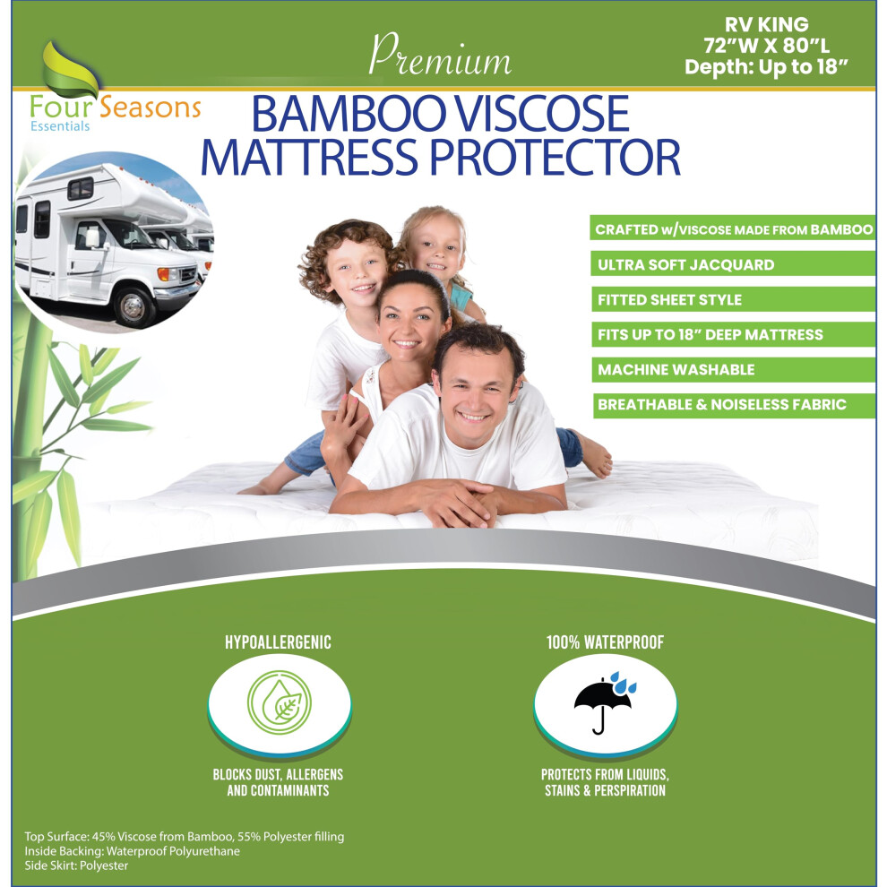 RV King Size Waterproof Mattress Protector - Bamboo Viscose Fitted Sheet Mattress Cover Hypoallergenic Cooling Premium Quality Ultra Soft Pad Protects