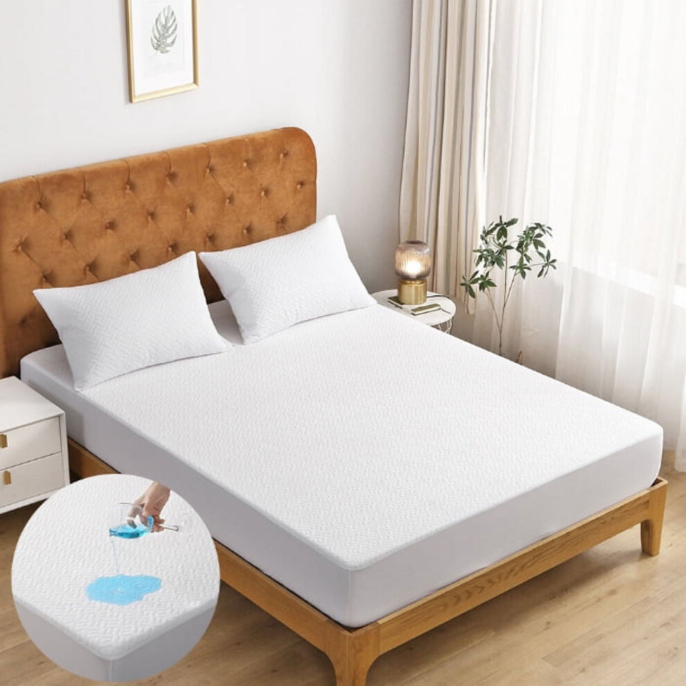 King Size Waterproof Mattress Protector Washable Mattress Bed Cover Soft Noiseless Breathable & Vinyl Free Bed Cover Fitted 30cm Deep (King Size (150x200cm))