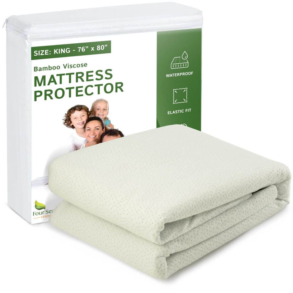 Four Seasons Essentials King Size Waterproof Mattress Protector - Cooling Viscose derived from Bamboo Fitted Sheet Mattress Cover - Quilted Jacquard P
